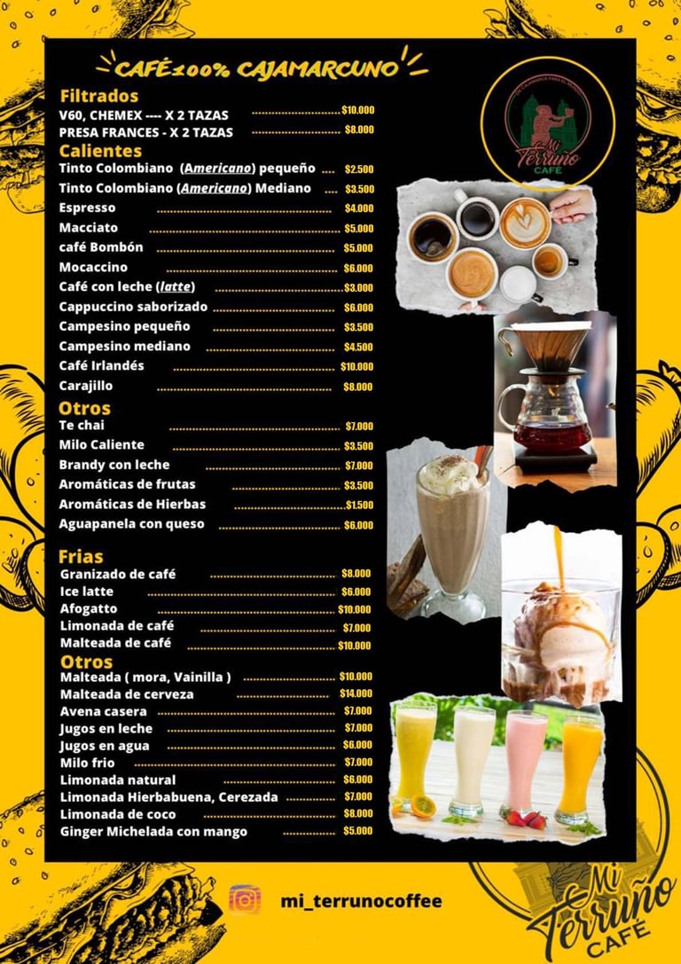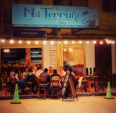 Mi Terruño ofrece una experiencia única que combina las comidas rápidas con la tradición de un buen cafe 100% de la región. mientras disfrutas de la vista del parque de Cajamarca Tolima